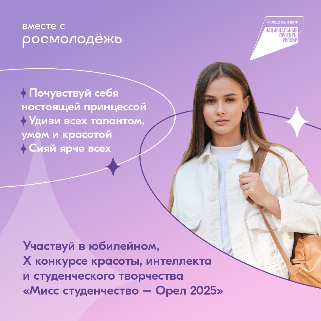 Орловские студентки могут принять участие в конкурсе красоты, интеллекта и студенческого творчества «Мисс Студенчество - Орёл 2025»