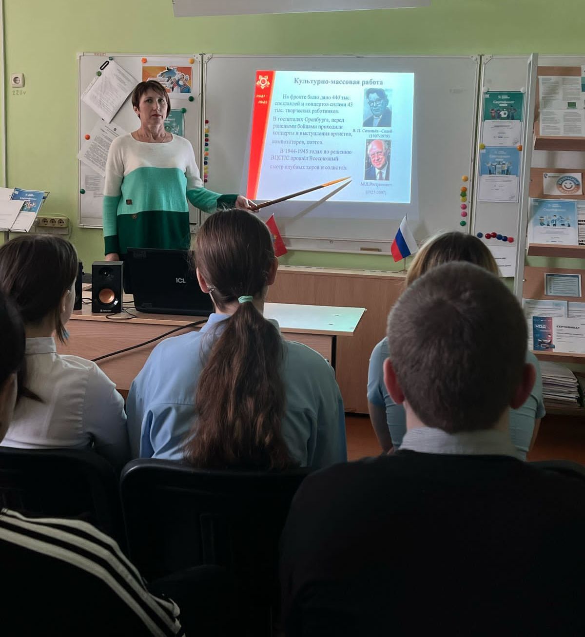 В нашей школе прошел Профсоюзный урок. Он был посвящен 80-летию Победы советской армии в Великой Отечественной войне. Урок провела председатель первичной профсоюзной организации нашей школы Ревина С.Н.. Великая Отечественная война вошла в историю как пример высочайшей силы человеческого духа, мужества, стойкости, героизма советского народа! Треть руководящих работников профсоюзов была призвана в Красную армию. Профсоюзы взяли на себя – организацию работы тыла, мобилизацию миллионных масс рабочих и служащих на выполнение заказов фронта, для помощи армии. Мы гордимся историей нашей страны и историей профсоюзного движения!